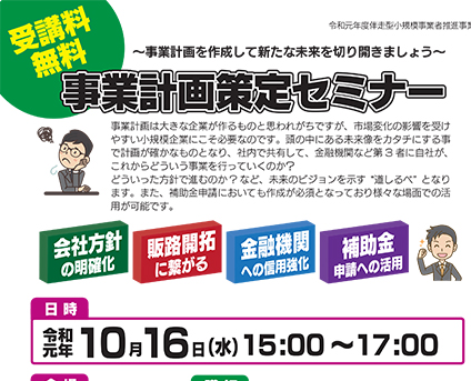 [終了]10/16(水)事業計画策定セミナー参加者募集