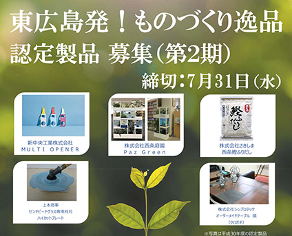 東広島発!ものづくり逸品認定製品を募集しています。詳細は以下PDFよりご確認ください。 PDFダウンロード 募集ページ